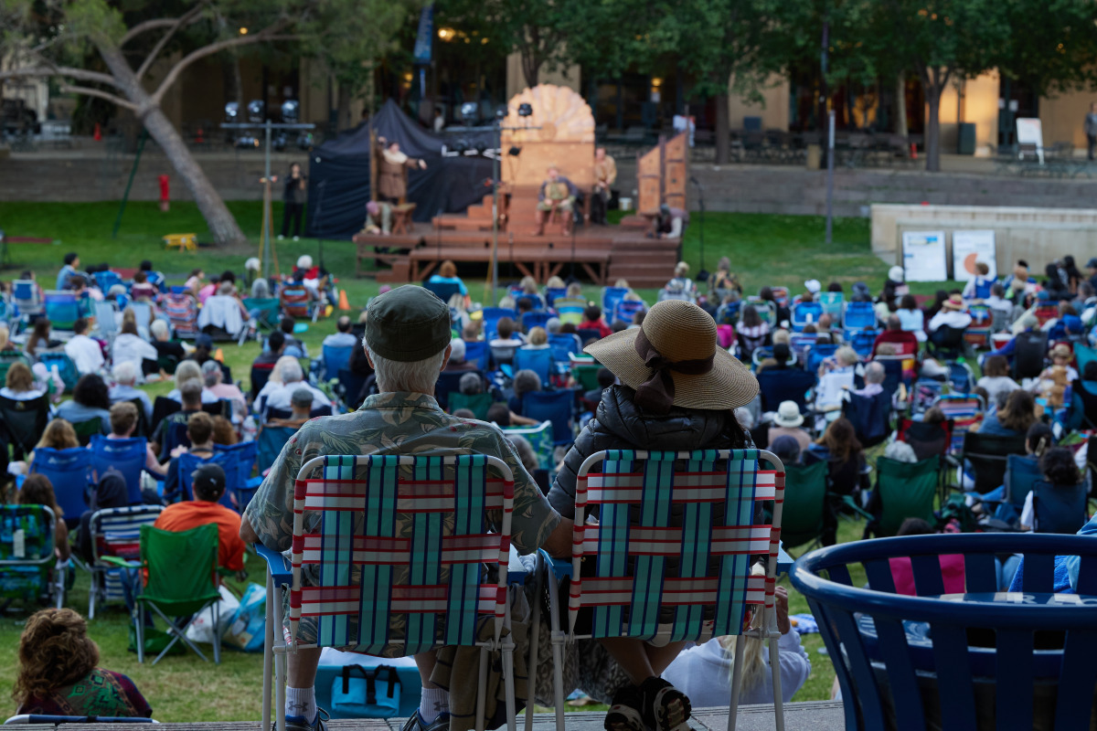 Theater lovers were treated to a fresh take on a Shakespearean classic on August 1, with a performance of Henry IV: Falstaff & The Boy Who Would Be King, which was co-sponsored by SUA and the City of Aliso Viejo. Directed by Stephanie Coltrin, this adaptation combined both parts of Shakespeare’s Henry IV, offering a lively retelling of the story of Prince Hal. Families and friends gathered with blankets, picnics, and low-backed chairs to enjoy the actors’ command of the stage, exciting sword fighting, and the timeless, romantic allure of Shakespeare as the summer sky faded to dusk.
